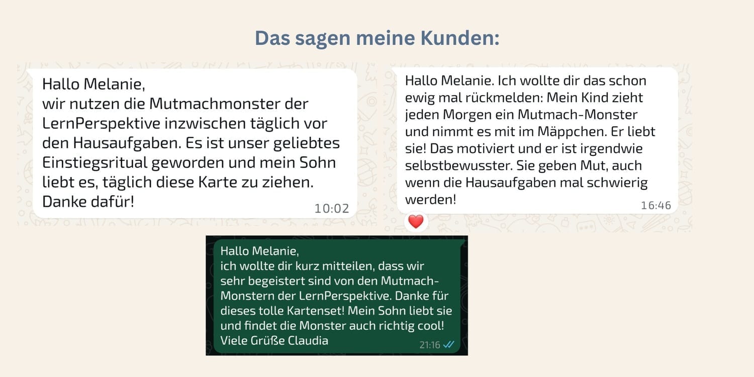 💛 Genau hier setzen die Monster Mutmachkarten der Lernperspektive an: